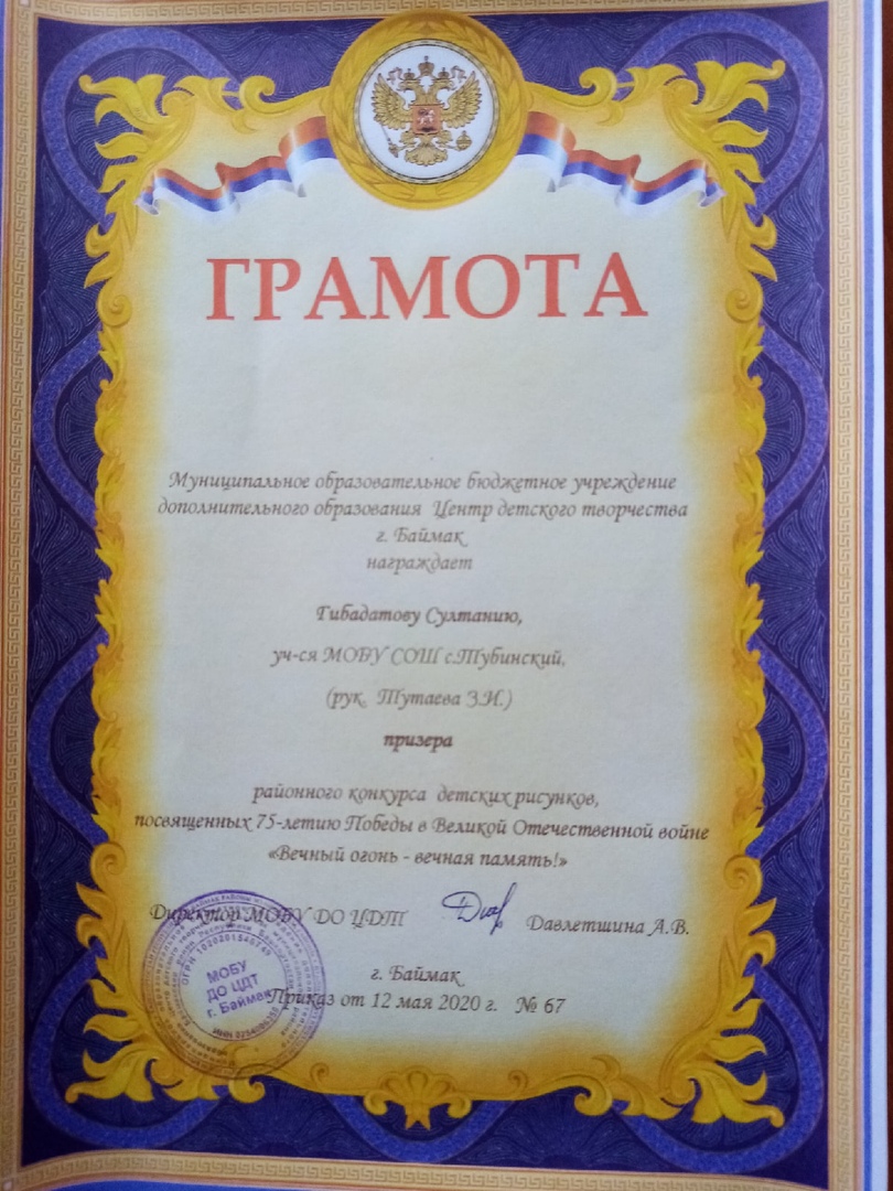 Грамота Кутлугалямовой З.