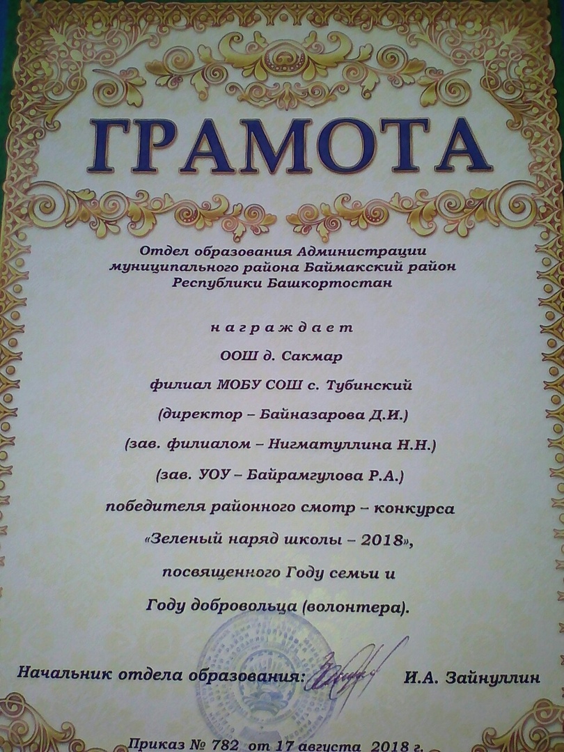 Грамота ООШ д.Сакмар