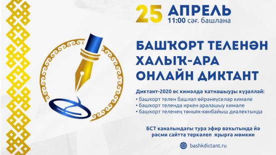25 апреля Международный диктант по башкирскому языку впервые пройдет в онлайн-формате. Это вызвано с эпидемиологической ситуацией в стране и мире.