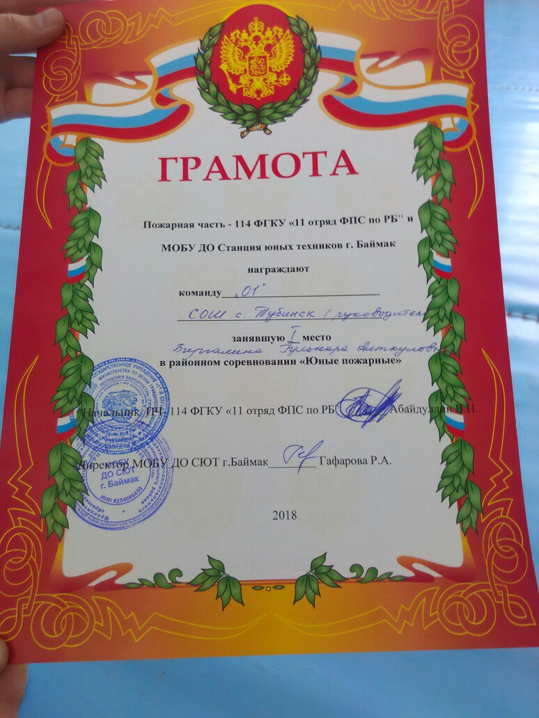 Поздравляем команду "01", занявшую I место в районном соревновании "Юные пожарные"